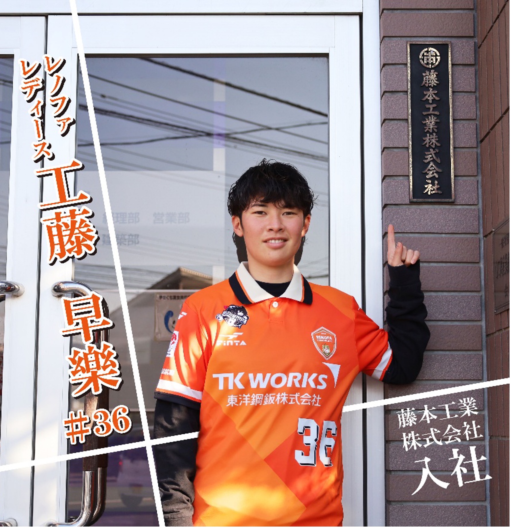 この度、藤本工業株式会社にレノファレディースの選手が入社致しました。 今年よりレノファレディース所属の工藤早樂さんです。 仕事とサッカーの両立は大変かと思いますが、藤本工業も応援していきます! 皆様も応援よろしくお願いします。 |